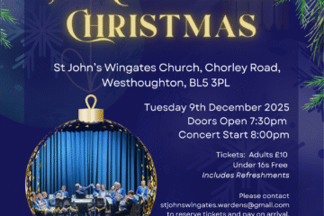 Join us for our Wingates Christmas at St John’s Church, Westhoughton. With all the Christmas favourites, there’s something for everyone. Including some incredible solos you don’t want to miss! Adults: £10 Under 16s: Free Please contact, stjohnswingates.wardens@gmail.com to reserve tickets and pay on arrival